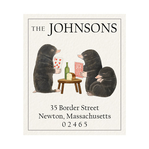 1.375 x 1.625 inches · Premium self-adhesive label paper · Crack-and-peel backing · Nestled in straw and gift-boxed